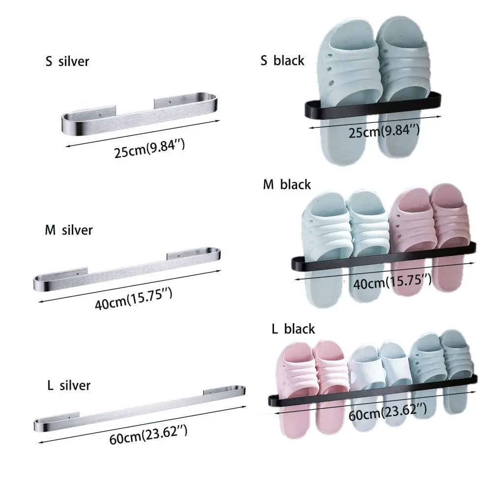 Название продукта: стойка для тапочек Материал: космический алюминий Длина: 25 см (9,84 ''), 40 см (15,75''), 60 см (23,62 '') Цвет: черный, серебристый Способ установки: клей без ногтей Особенности: Легко устанавливается с помощью клея без ногтей. Без сверления, без инструментов, без повреждений стен. Поможет вам сэкономить место и сохранить домашний порядок. Он может держать тапочки и помочь сохранить ваш дом аккуратным и чистым. Подходит для гладкой, не пористой поверхности, мест для прихожей, поверхности мебели, мест для ванной или душевой комнаты и т. д. Примечания: В связи с различиями мониторов и эффектами освещения реальный цвет товара может немного отличаться от цвета на фотографиях. Спасибо! Посылка включает в себя: 1 * стеллаж для тапочек