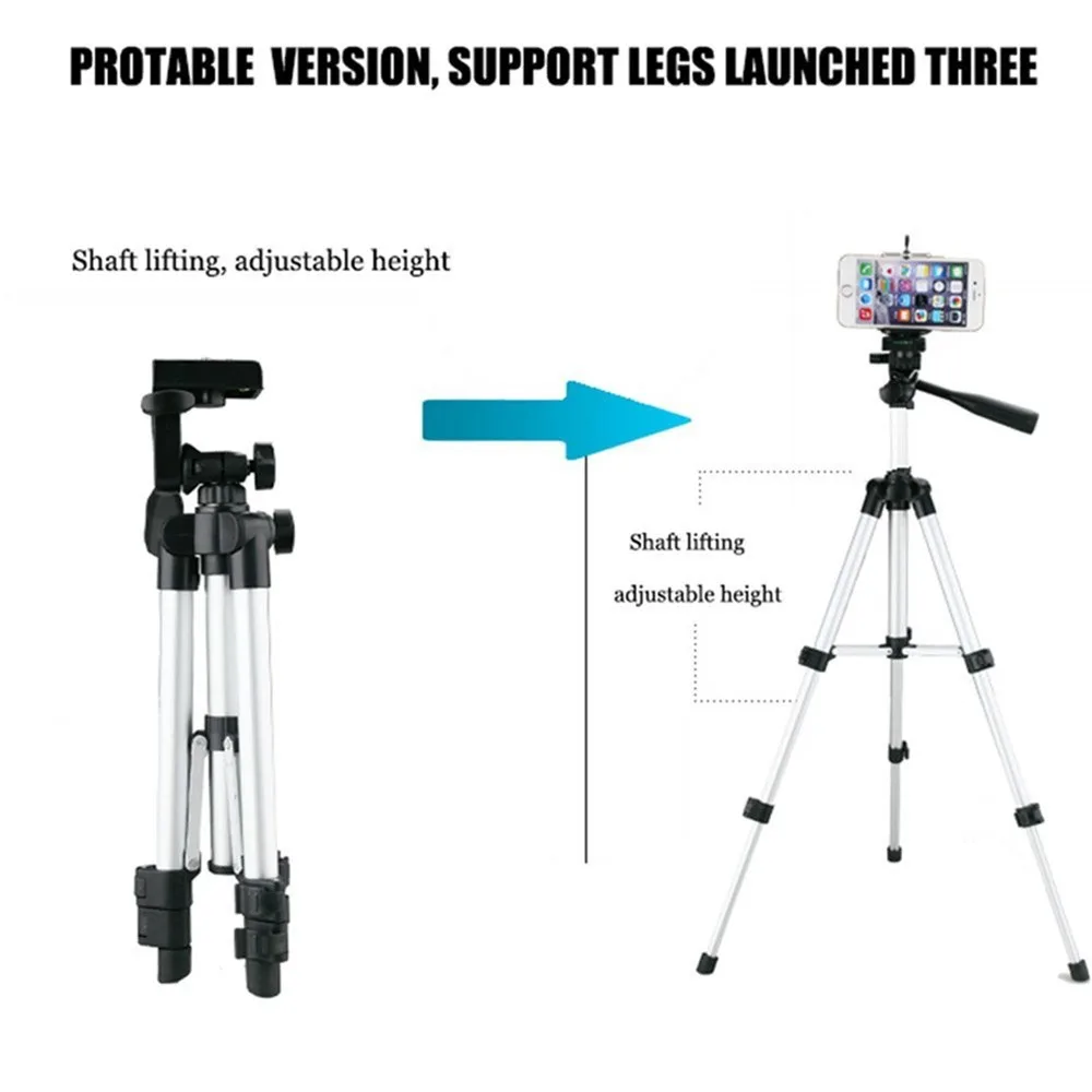 Алюминиевый штатив для камеры 50 дюймов + Универсальный держатель для смартфона + беспроводной пульт дистанционного управления Bluetooth затвор камеры Описание товара Более удобный Штатив 50 дюймов -Нескользящие ножки и индикатор Пузырькового Уровня -Имеет регулируемый центральный полюс и поставляется с водонепроницаемым чехлом для переноски. -Штатив легкий и мобильный с ножками из алюминиевого сплава и 3-сторонней панорамной головкой. Универсальное крепление для смартфона -Легкое крепление -Мягкий захват, чтобы избежать повреждения вашего смартфона -Регулируемый адаптер для телефона подходит для всех телефонов шириной от 55 мм до 85 мм. Беспроводной пульт Bluetooth -Беспроводной Bluetooth пульт работает для большинства Android и смартфонов Apple iPhone -Для загрузки приложения не требуется -С помощью Bluetooth-соединения вы можете начать использовать свой беспроводной пульт -Легкий и легко держать в кармане или как брелок -Снимки можно делать на расстоянии до 30 футов Посылка входит: -1x50 "дюймовый штатив -1 держатель для телефона -1 пульт дистанционного управления Bluetooth Примечание: пульт дистанционного управления не включает батарею