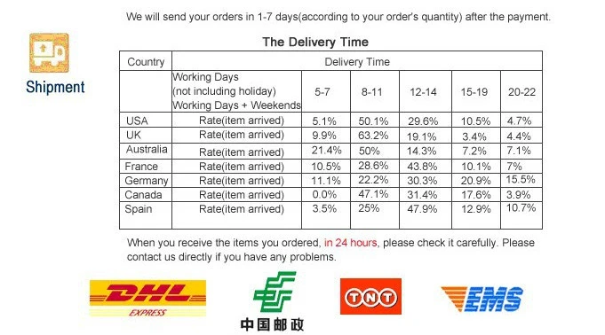 6) Due to stock status and time differences, we will choose to ship your item from our first available warehouse for fast delivery.