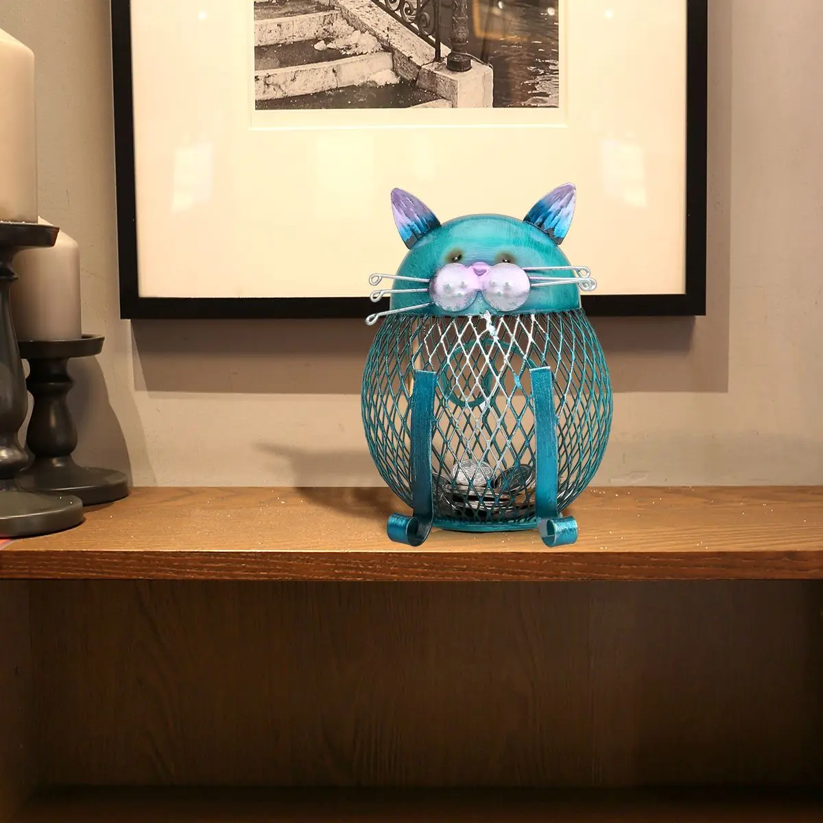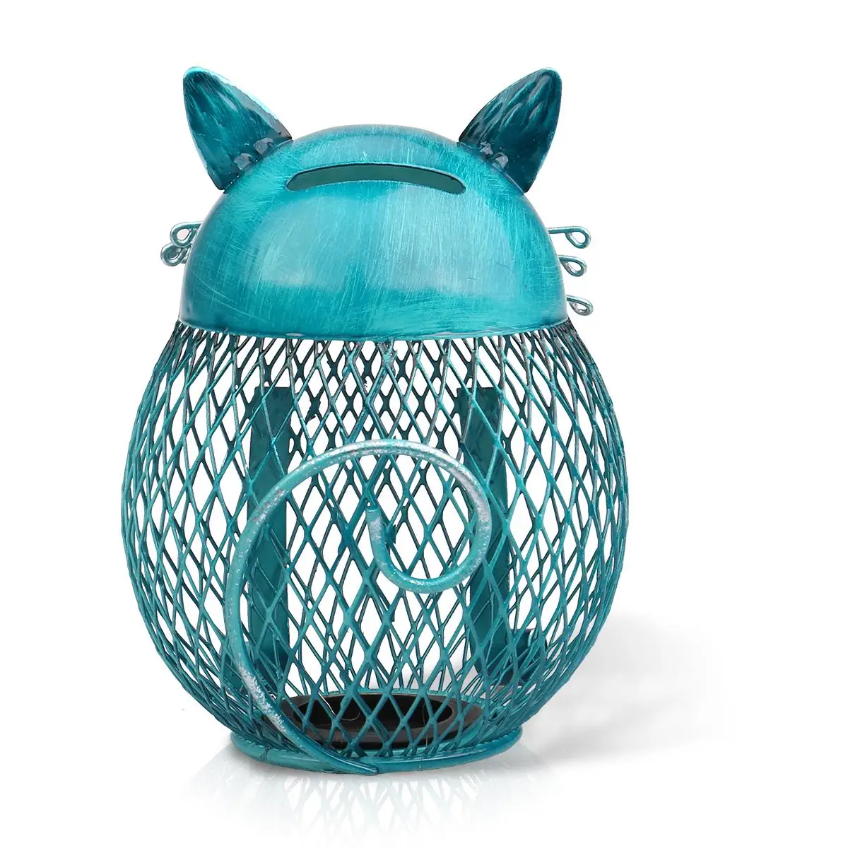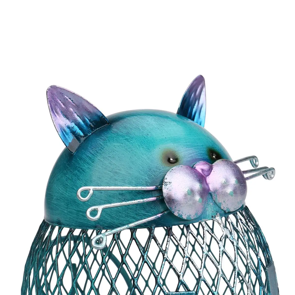 Это красивая и креативная железная монетная коробка в форме кошки. Он имеет милый внешний вид и выглядит так восхитительно. Тело кошки изготовлено из сетчатой железной сетки, что позволяет видеть, как состояние увеличивается напрямую, и ощущать радость от экономии денег. Независимо от того, положите его на свой стол или на вход, он создаст художественную атмосферу для вашего дома.