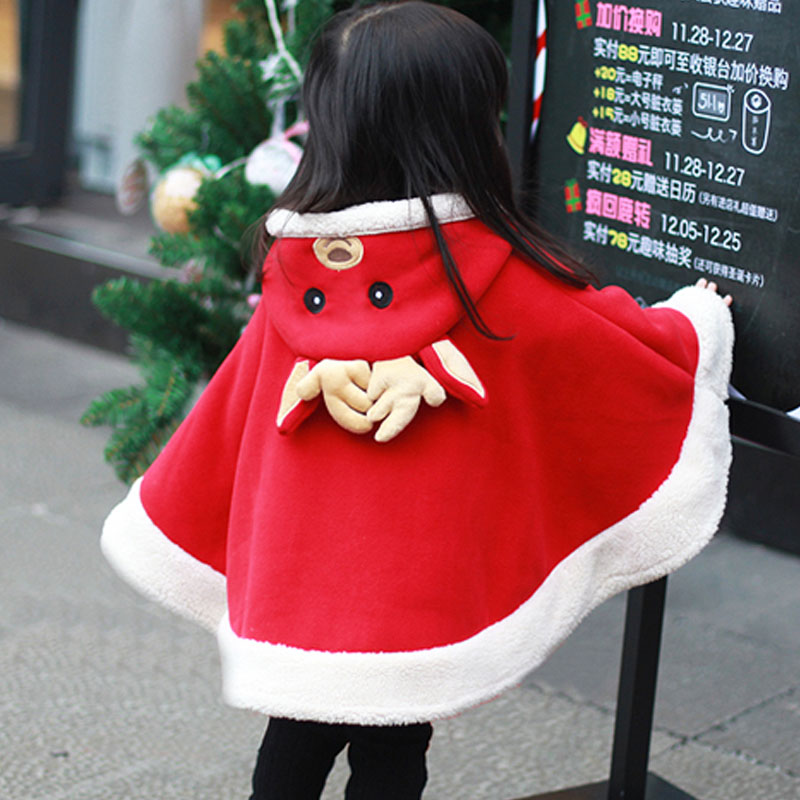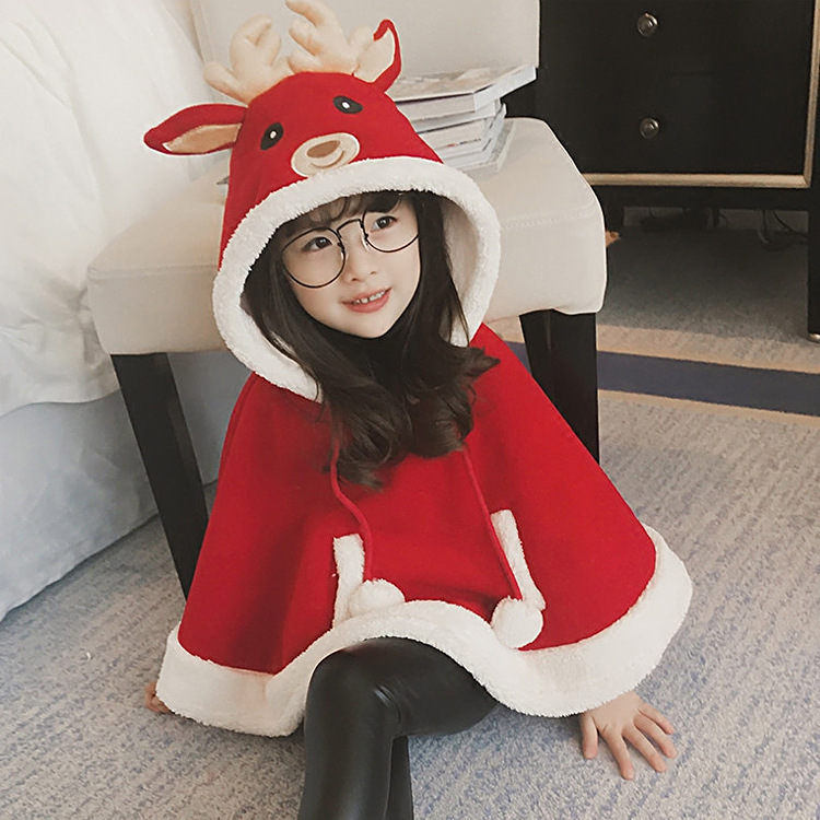 Пончо для девочек, зимние куртки с искусственным мехом и цветочным принтом, рождественские топы для детей, верхняя одежда, куртка с капюшоном и рисунком оленя, зимний комбинезон, пальто