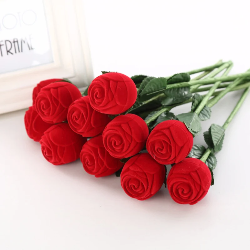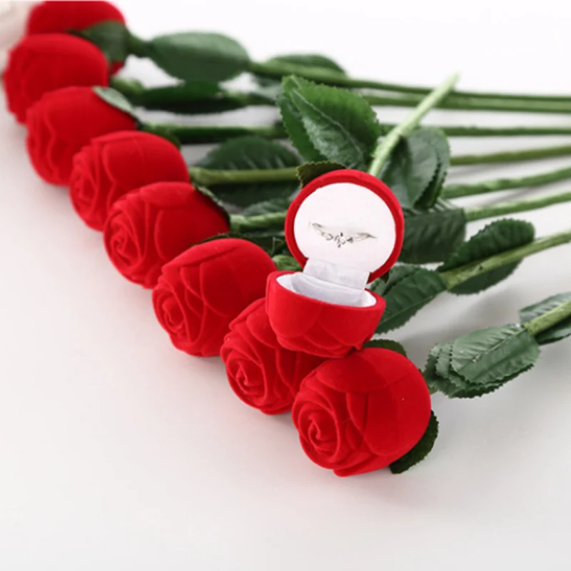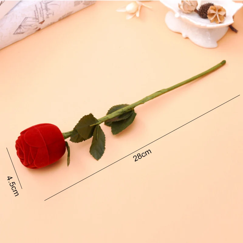 Красивая красная роза кольцо коробка с зелеными листьями внизу, очень романтично и удивительно.
