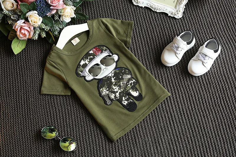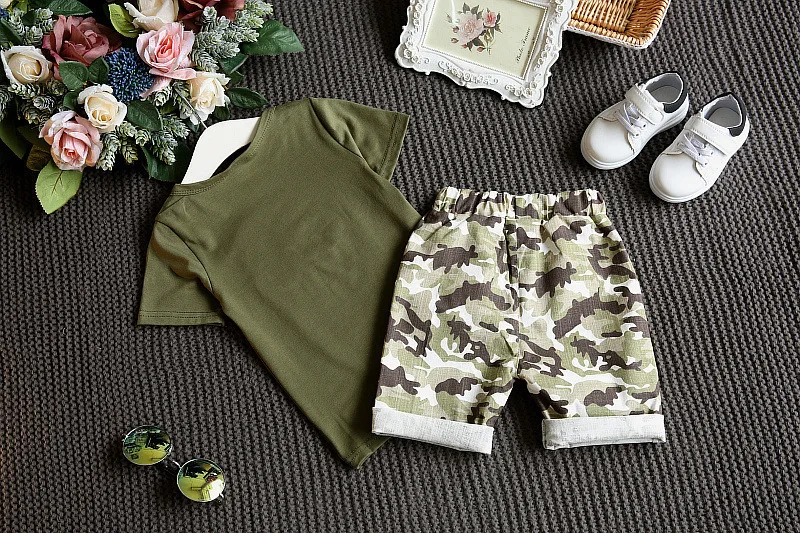 Футболка с коротким рукавом и камуфляжные шорты для мальчиков Детский комплект