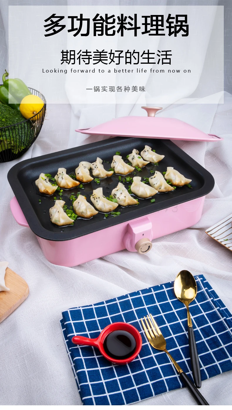 Сетчатый красный Мини один горшок корейский горячий горшок гриль многофункциональная Жареная Машина для барбекю Бытовая сковорода для выпечки электрическая сковорода для выпечкиUS $75,00 /