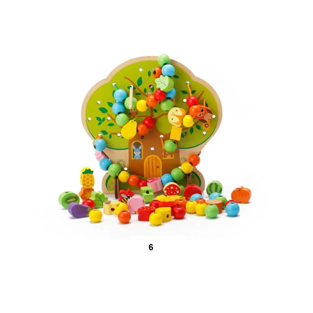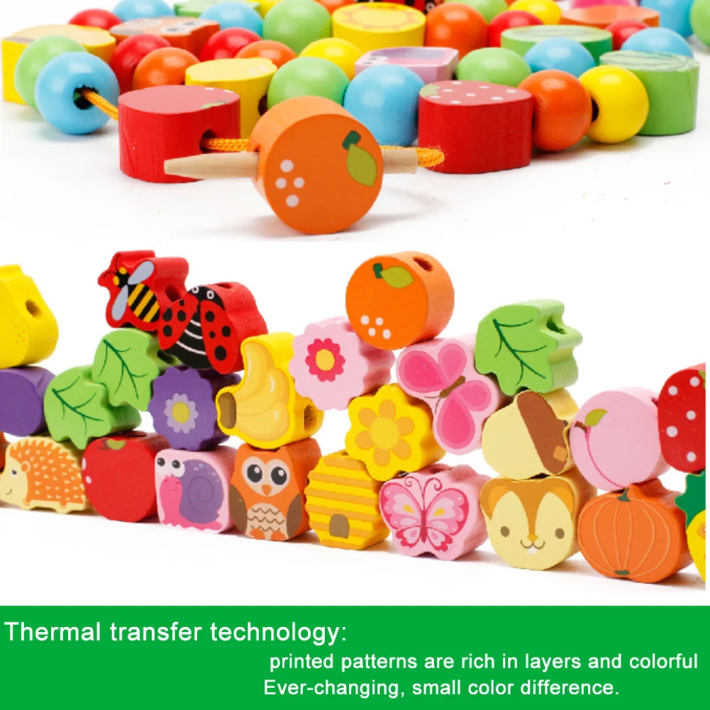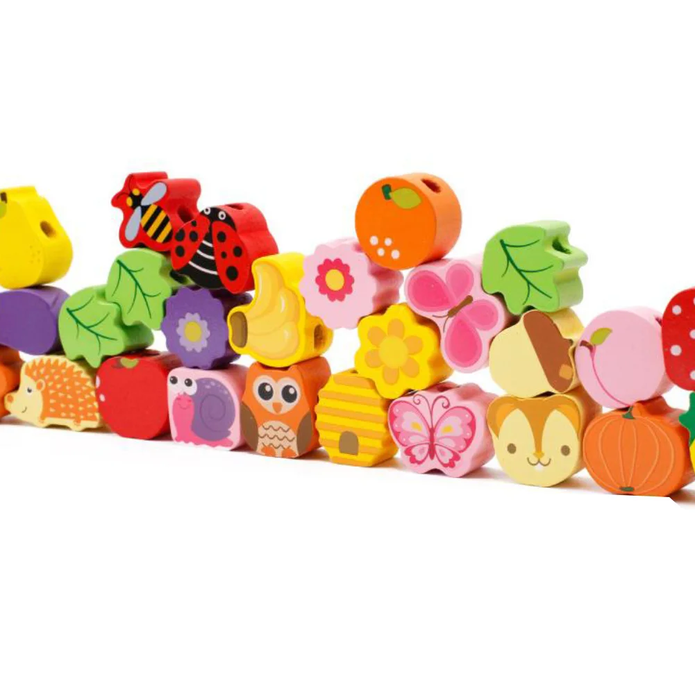 Деревянные животные фрукты и овощи, шнуровка, растягивающиеся бусины, Детская развивающая игрушка