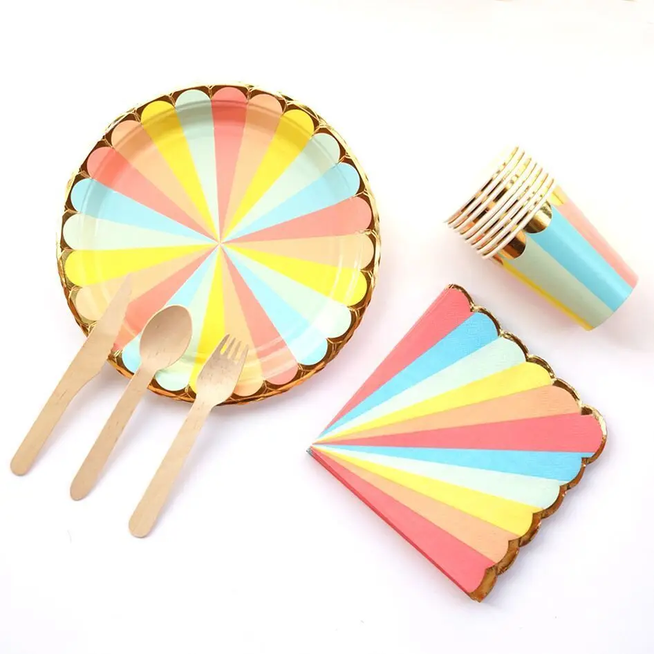 Радужные бумажные тарелки для вечеринки, чашки, соломенная посуда, принадлежности для вечеринок, розовое золото, детский душ, свадебные украшения, Детский комплект на день рождения