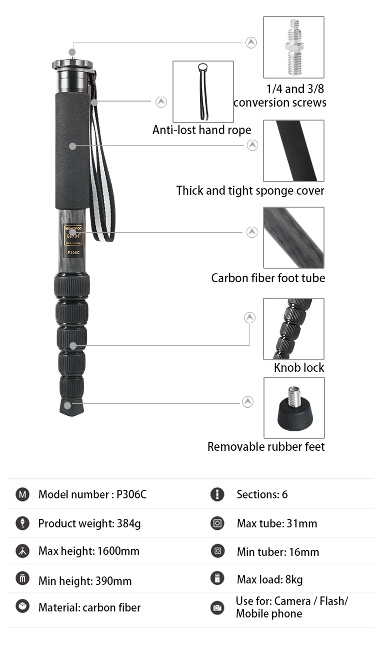 Профессиональный монопод из углеродного волокна легкий монопод держатель dslr видео stant селфи палка штатив монопод для камеры телефона