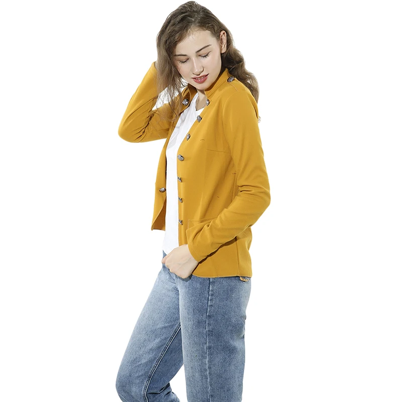 Женский блейзер с длинным рукавом и пряжкой, маленький свободный костюм желтого и красного цветов