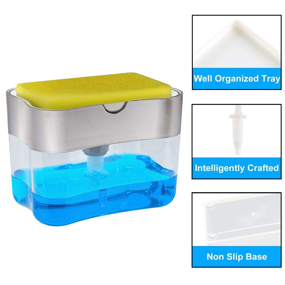 Дозатор для мыла с держателем для губки, дозатор для жидкости, контейнер, Ручной пресс-органайзер для мыла, кухонный очиститель