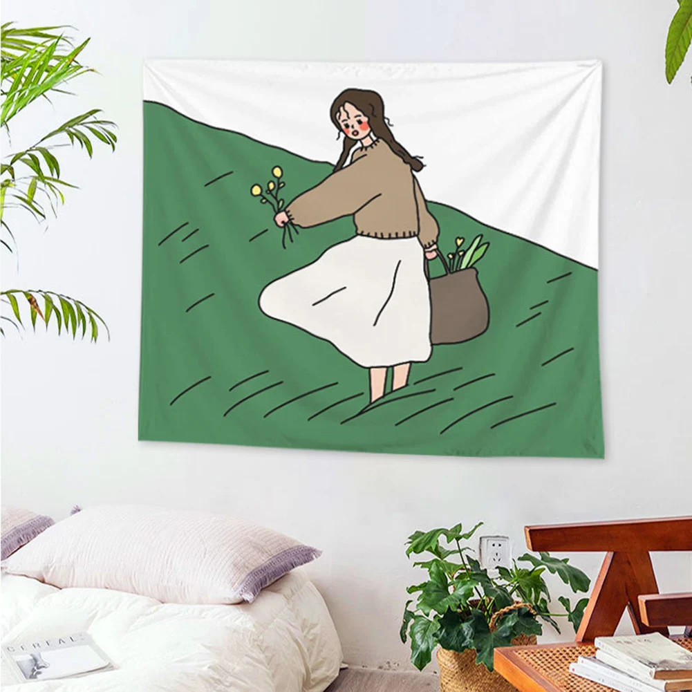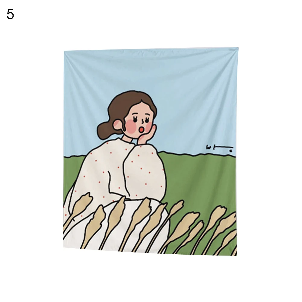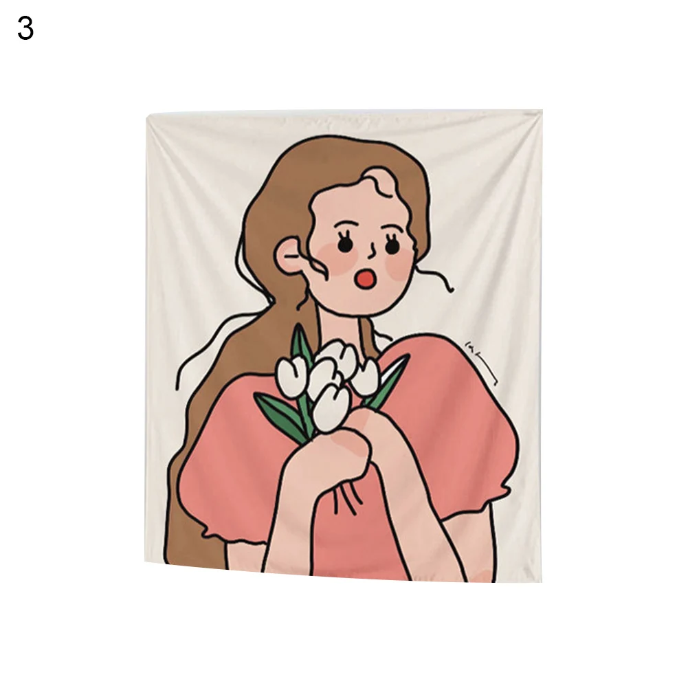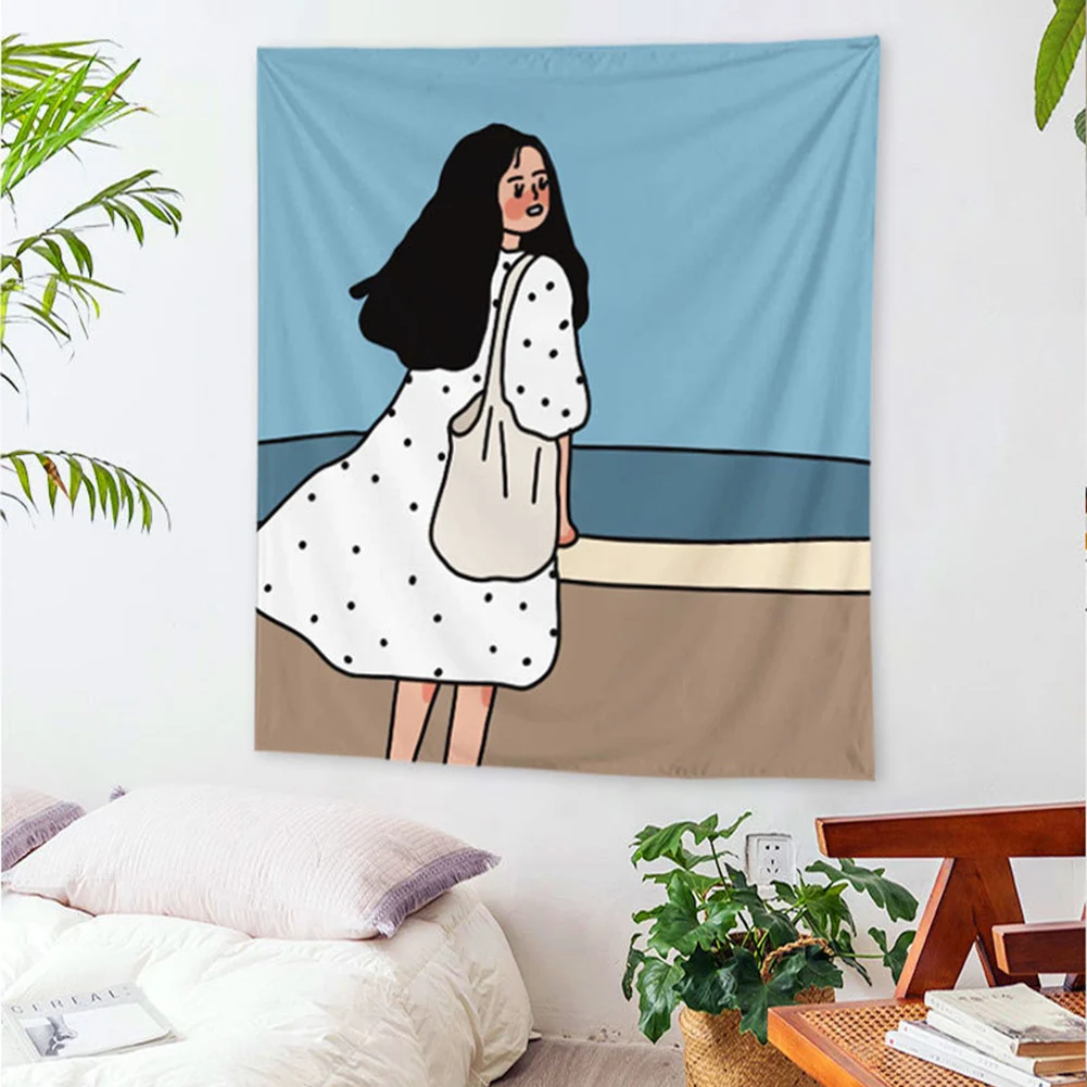 Nordic Cute Girl Wall Hanging Tapestry Carpet Beach Towel Bedroom Decoration