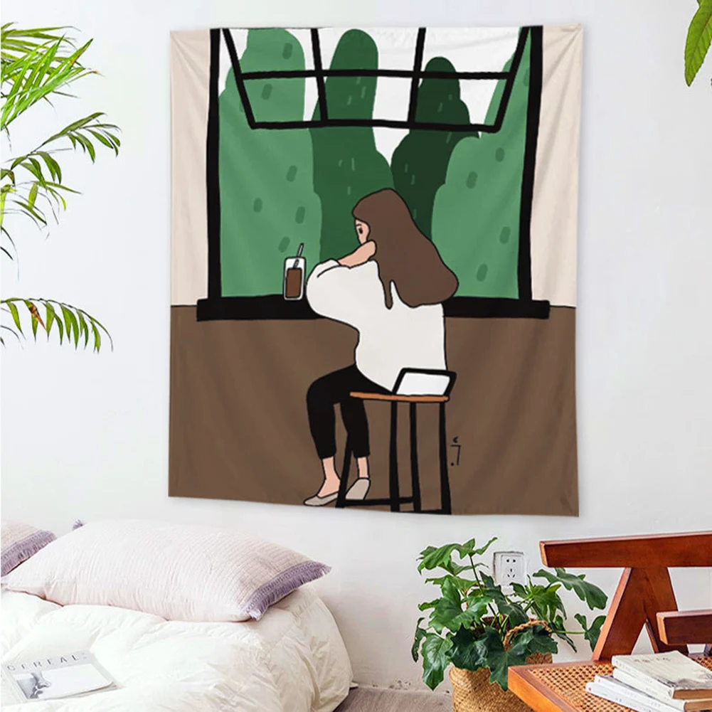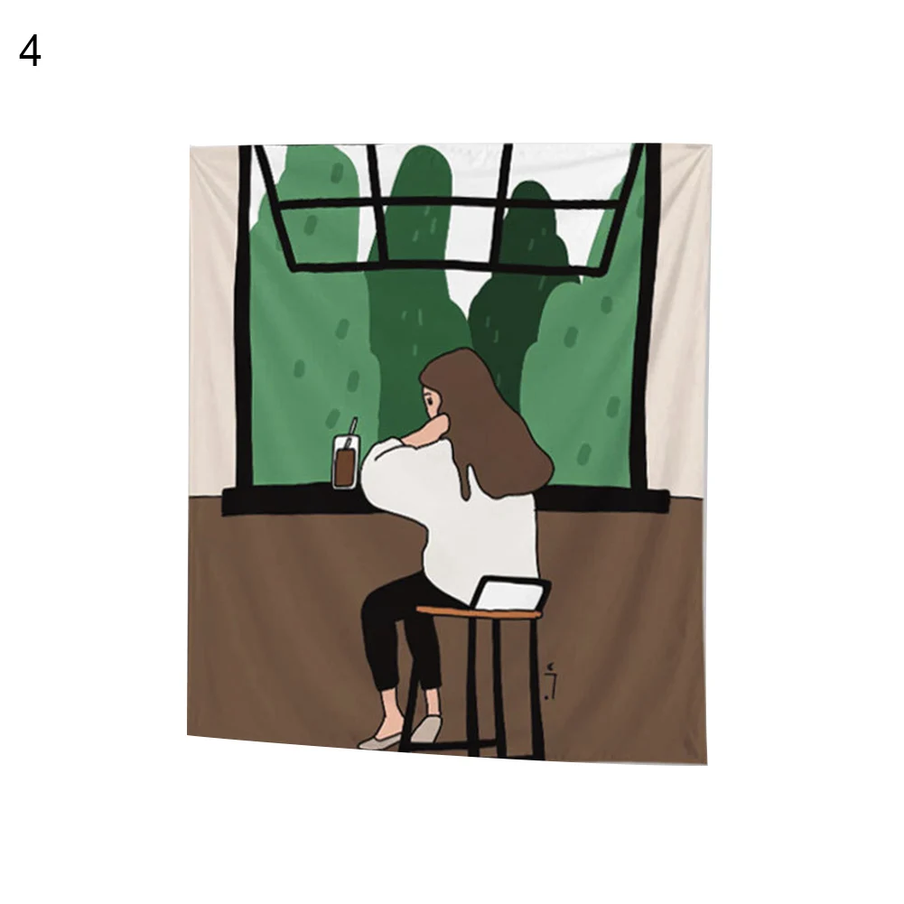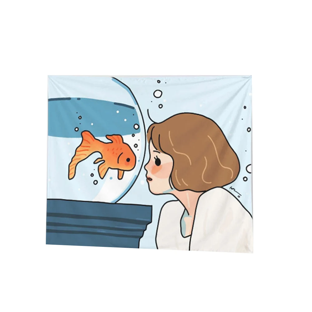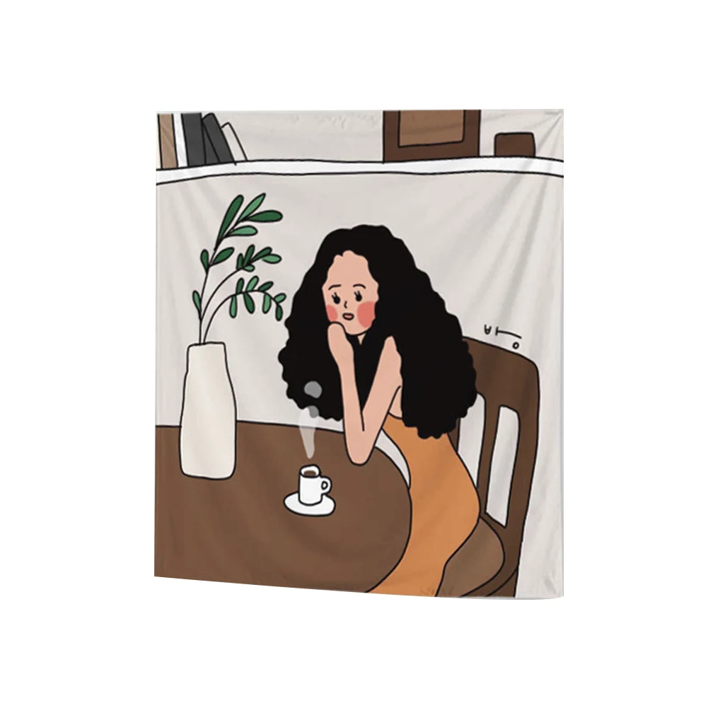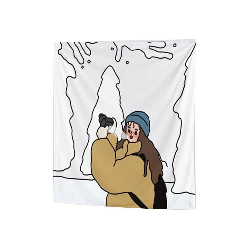 Nordic Cute Girl Wall Hanging Tapestry Carpet Beach Towel Bedroom Decoration