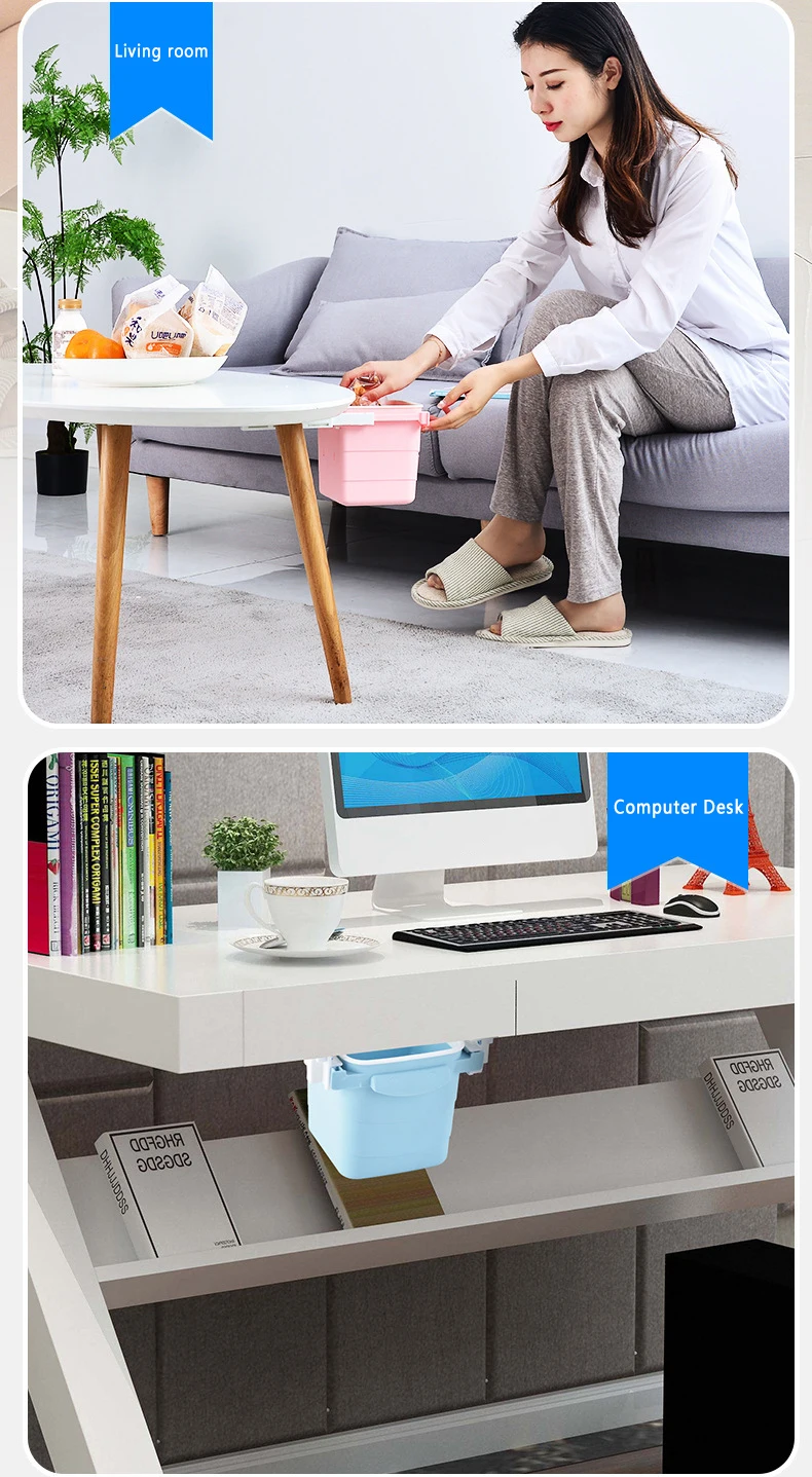 Невидимый выдвижной мусорный ящик для офисного домашнего стола ящик для мусора