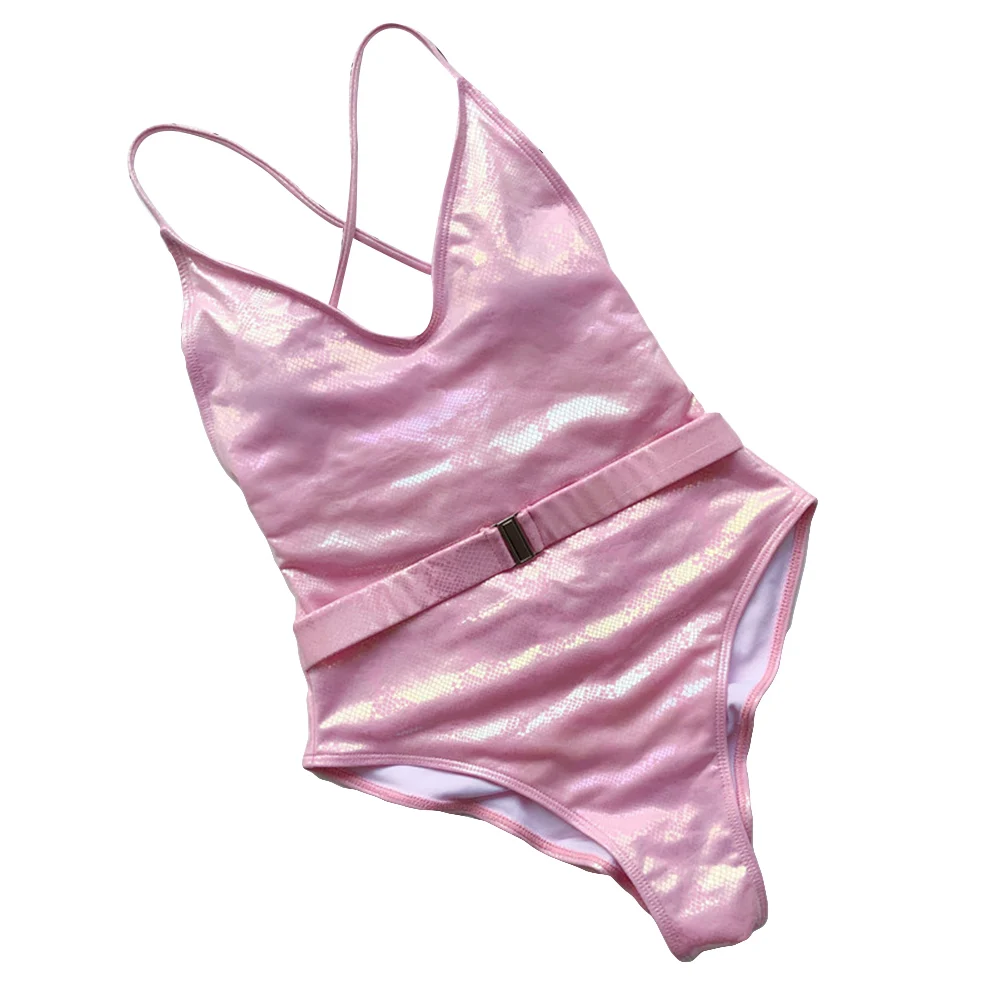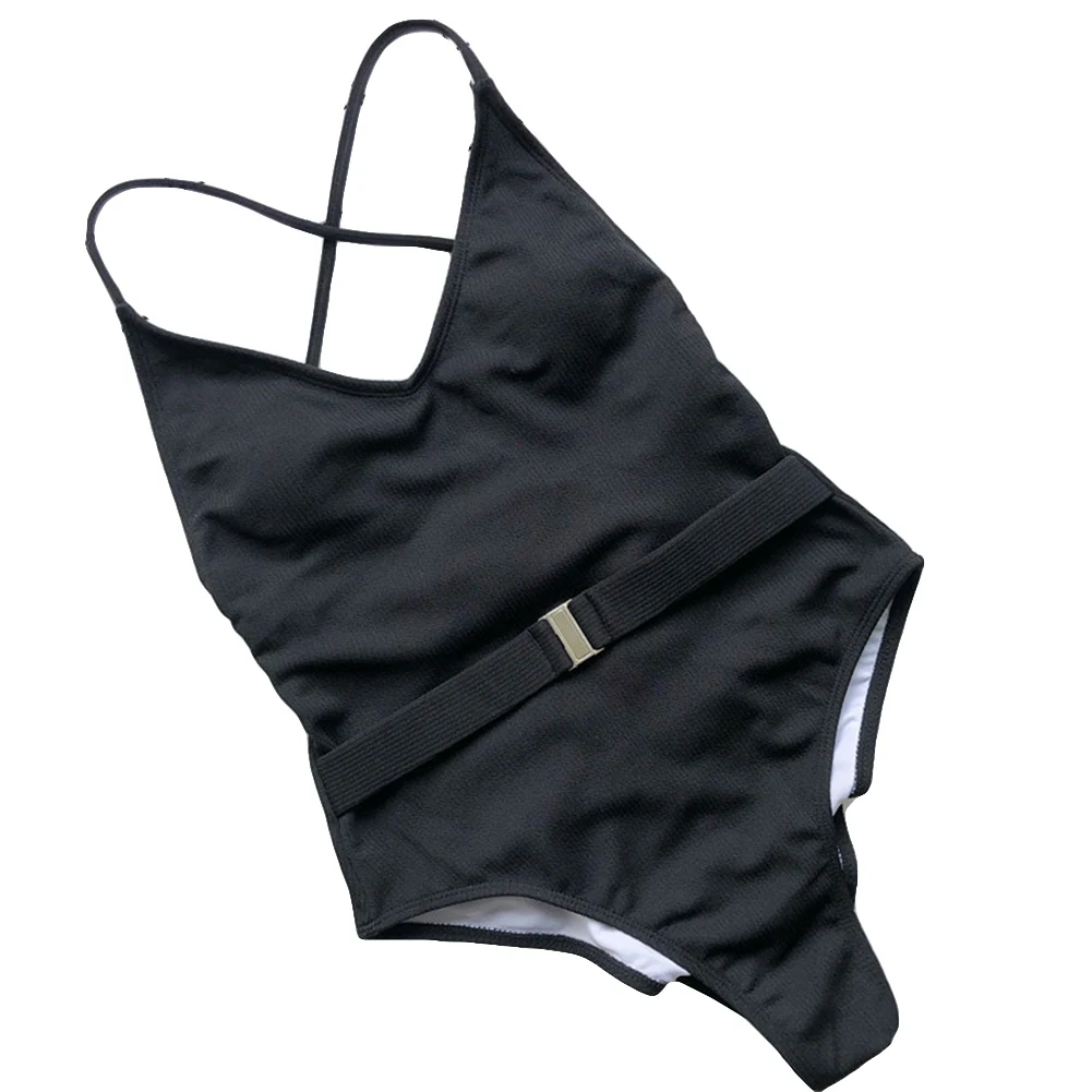 Женский сексуальный летний Одноцветный Мягкий ремень с v-образным вырезом сзади бандажный Монокини купальник