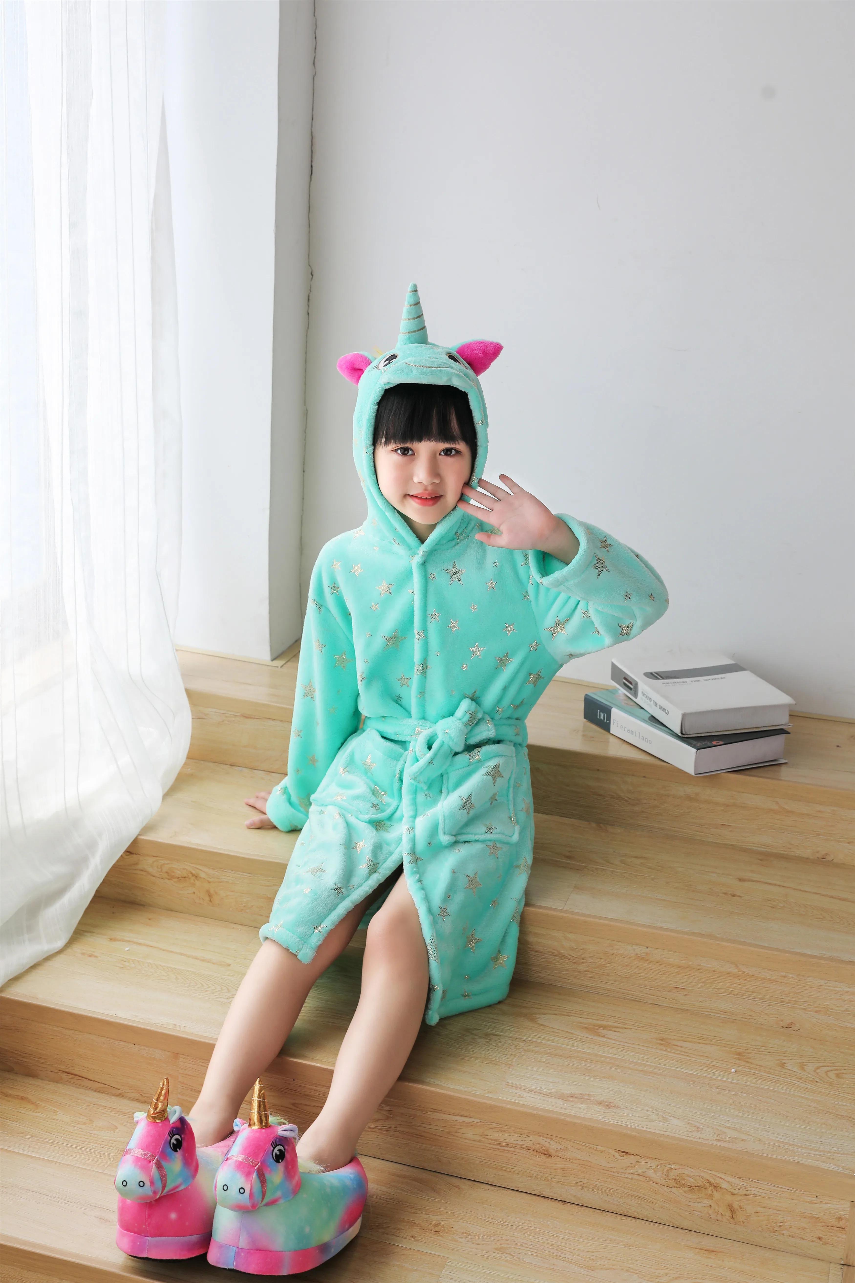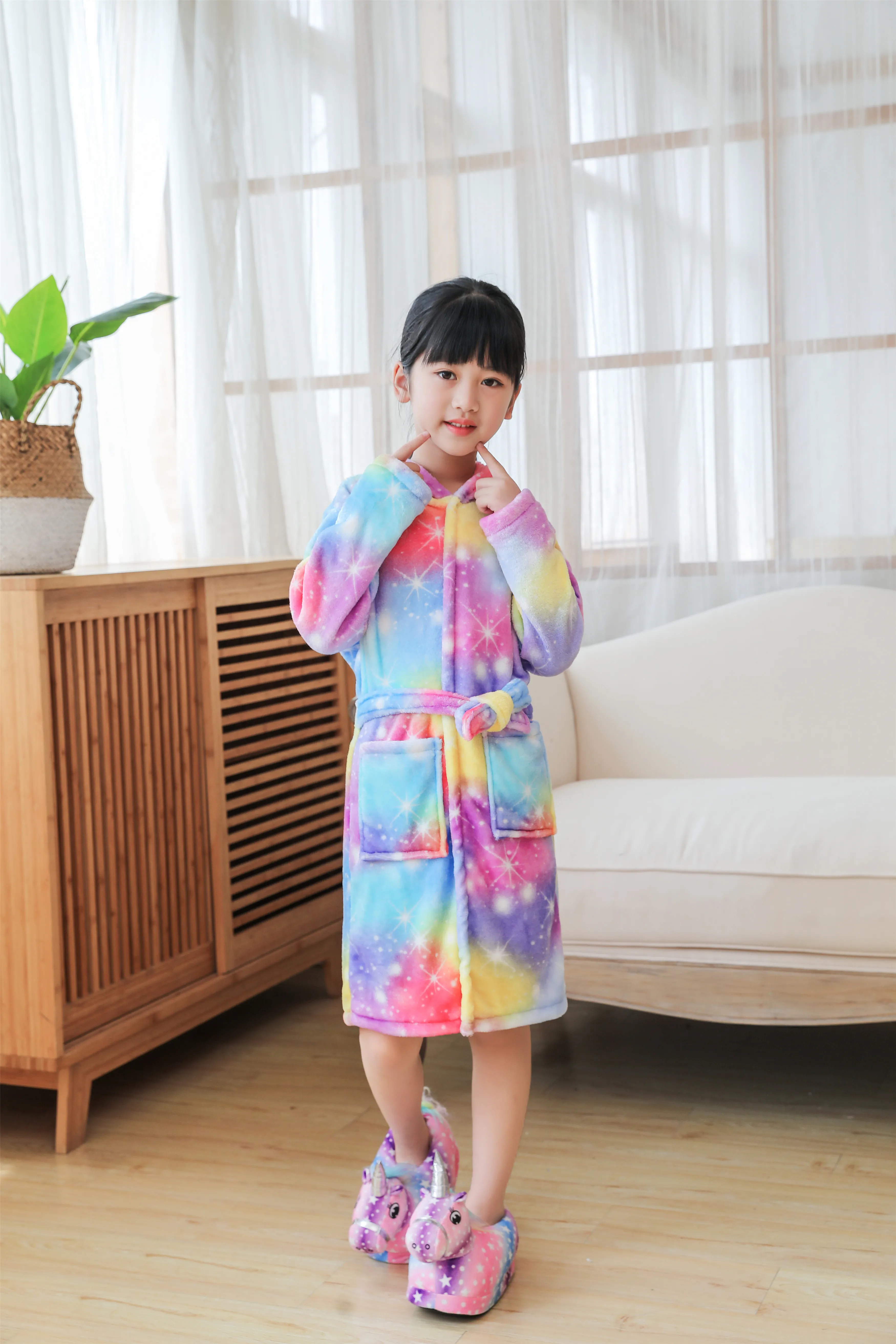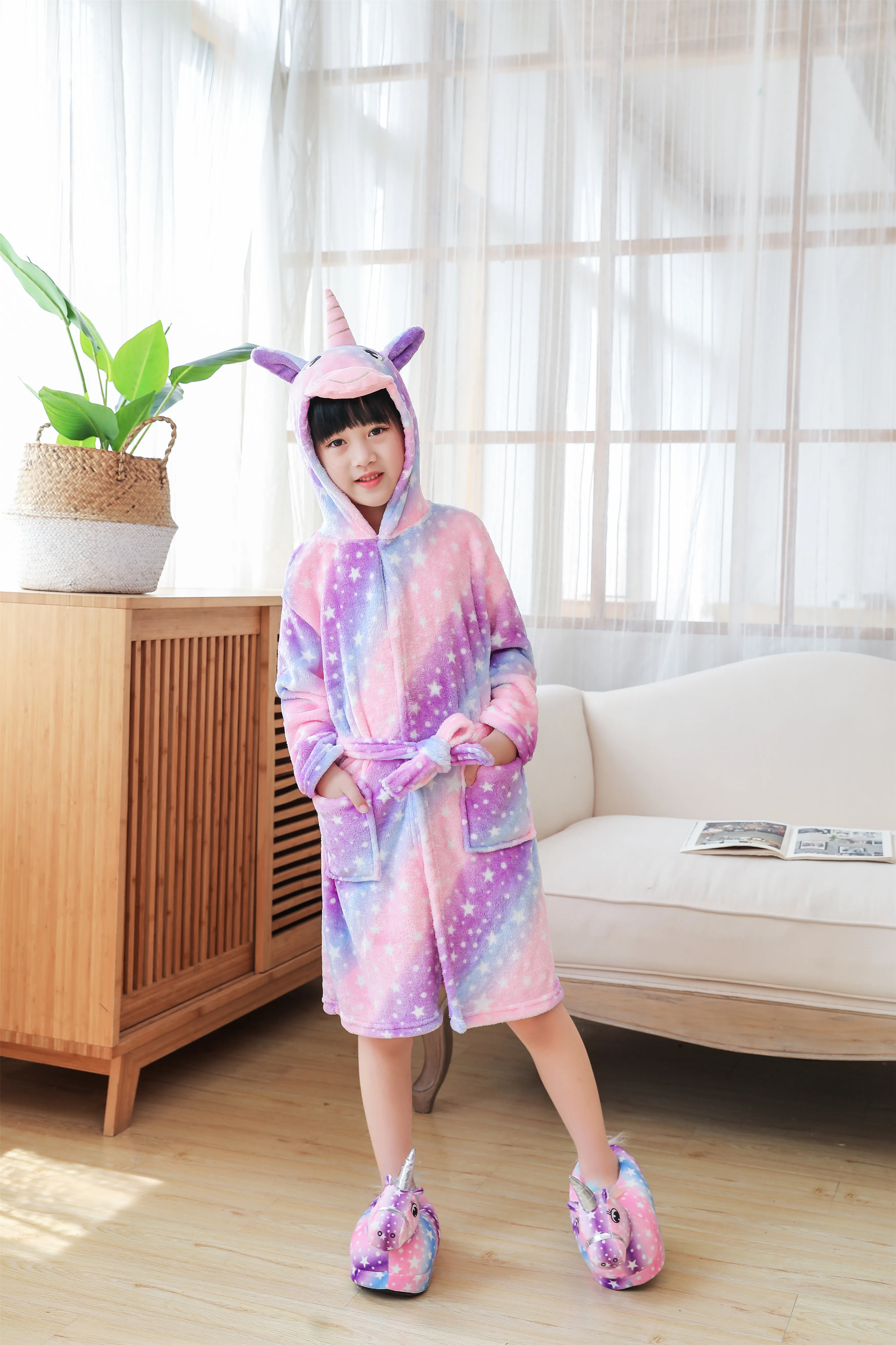 Loozykit фланелевый Халат зимний теплый халат одежда для сна мальчиков и девочек с