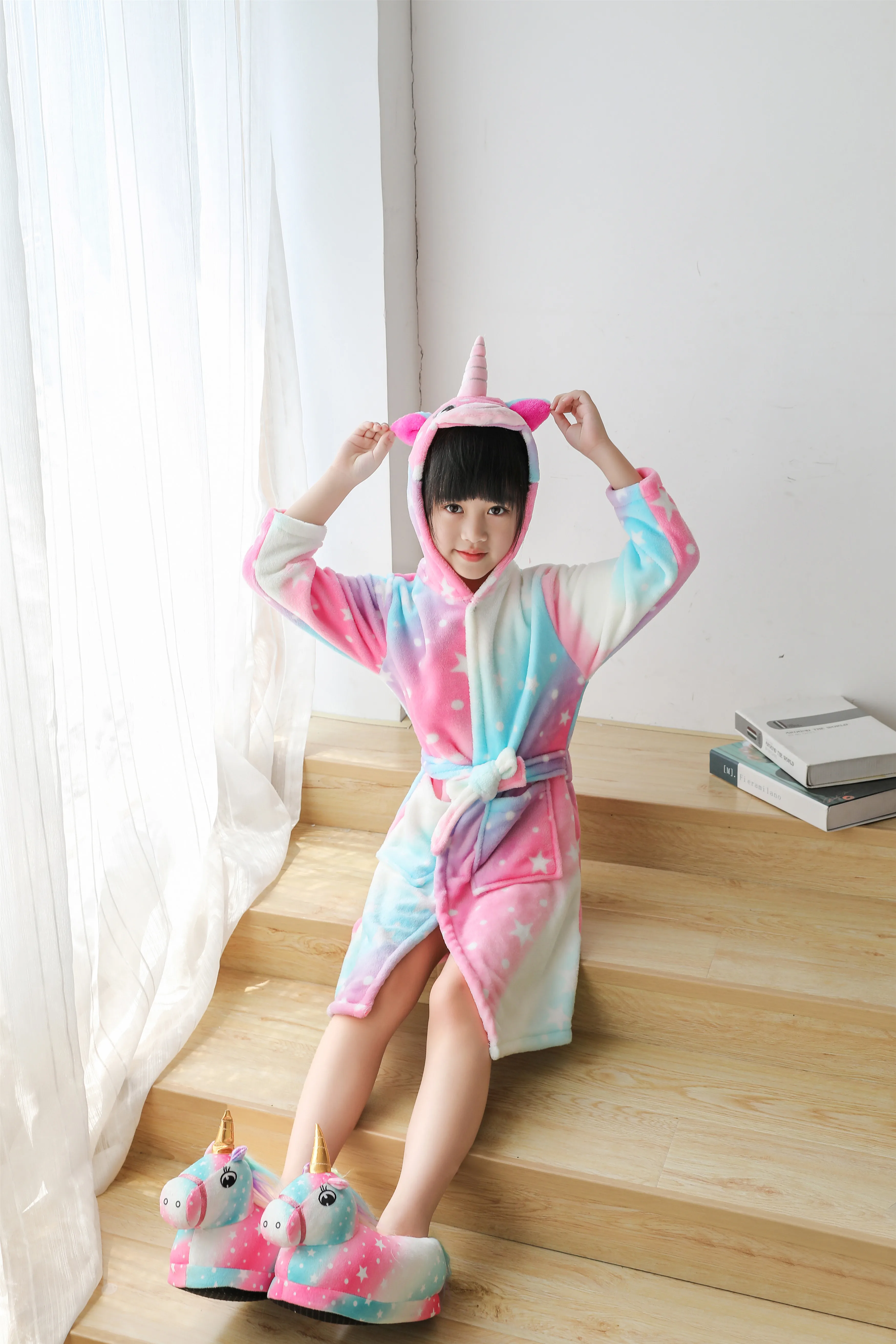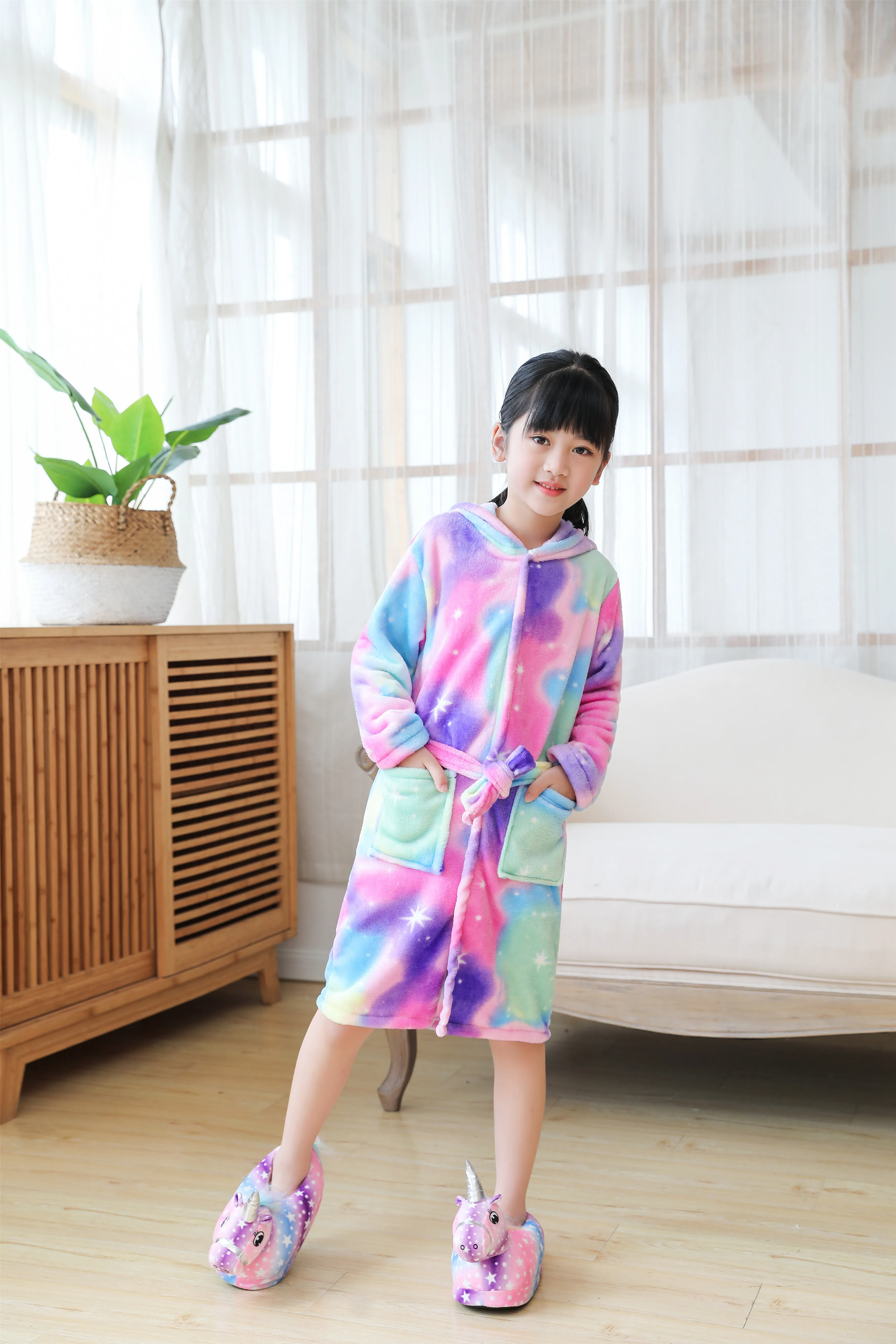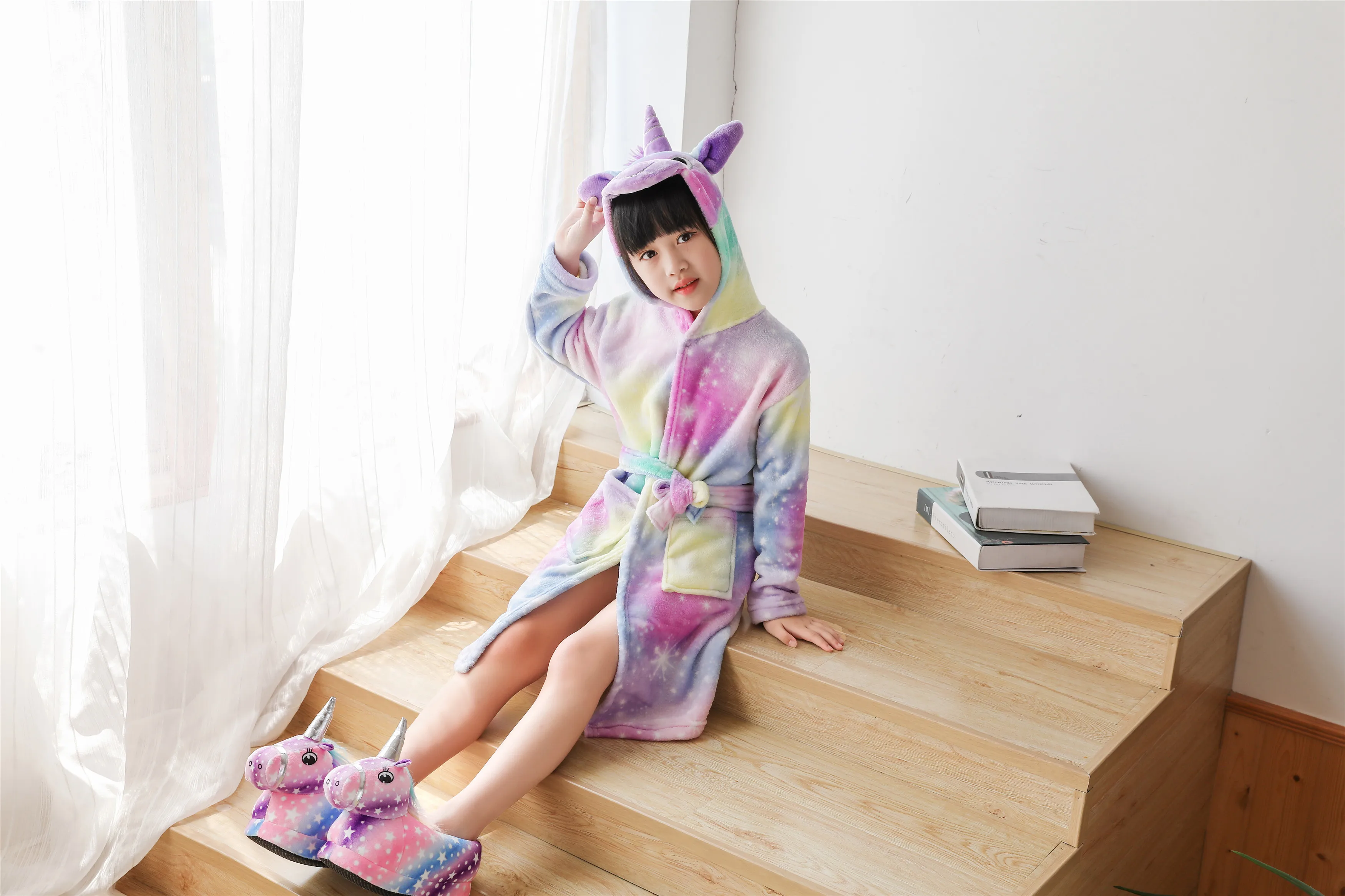 Loozykit фланелевый Халат зимний теплый халат одежда для сна мальчиков и девочек с